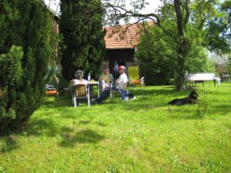 Das Gartenstück und die Freifläche vor dem Haus ist der Ferienwohnung im 1. OG zur Nutzung vorbehalten, während die Wiese hinter dem Haus zur EG - Wohnung gehört.