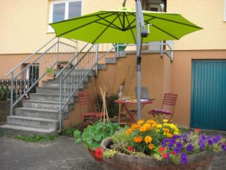 Das Gartenstück und die Freifläche vor dem Haus ist der Ferienwohnung im 1. OG zur Nutzung vorbehalten, während die Wiese hinter dem Haus zur EG - Wohnung gehört.
