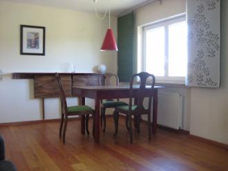 Die Ferienwohnung (ca. 72 m²) liegt im 1. Obergeschoss und ist hell und freundlich ausgestattet. Sie hat eine Küche, ein Badezimmer, ein großes und ein kleines Schlafzimmer, ein Wohn - / Esszimmer und einen Flur. Die Wohnung kann von 1 - 5 Personen genutzt werden. Bei Bedarf kann im Erdgeschoss ein Zimmer oder die gesamte Wohnung dazu gemietet werden.