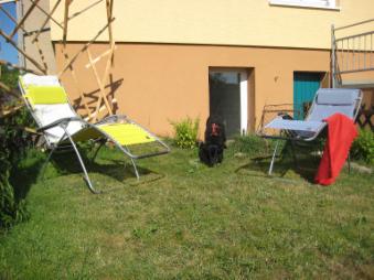 Jedoch kann die Wiese hinter dem Haus nach Absprache oder wenn die EG - Wohnunng nicht genutzt wird, was in der Regel unter der Woche der Fall ist, mitbenutzt werden.